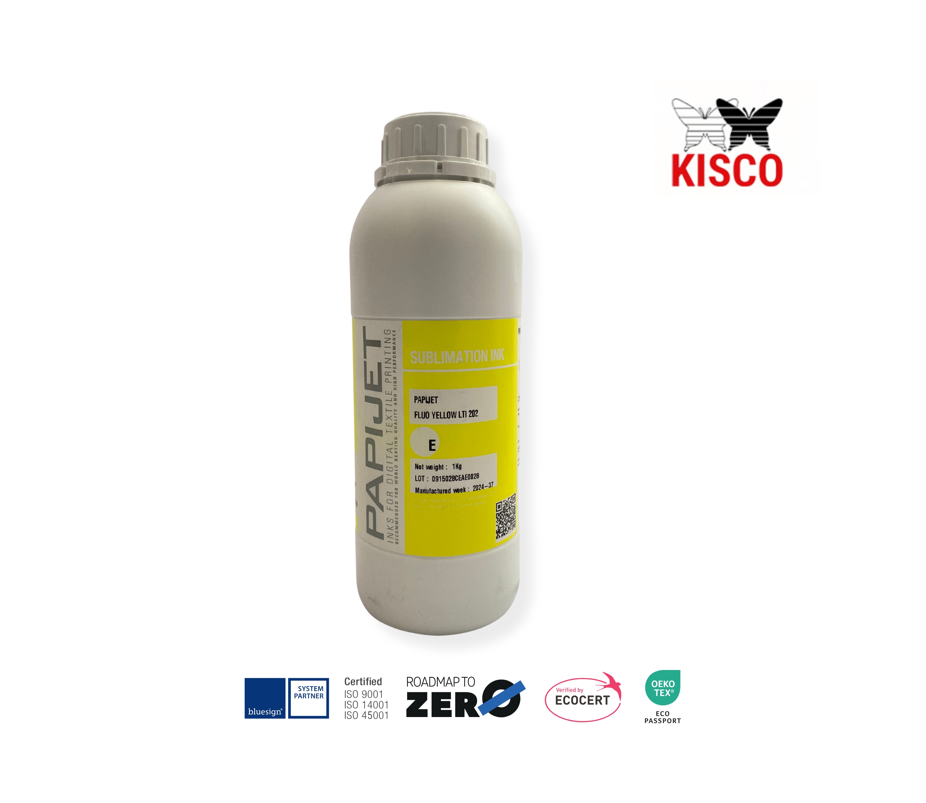 Las tintas fluorescentes KISCO, fabricadas en Corea del Sur, ofrecen pigmentos de altísima pureza y brillo, logrando colores intensos, luminosos y estables para aplicaciones de sublimación textil profesional.